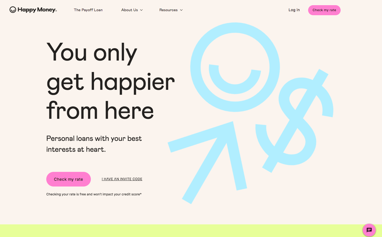 Background: I joined Happy Money when it was still technically called “Payoff” and led the entire brand transition, including new brand strategy, comms and look/feel development, website, funnel and channel migration as well as launching all new Happy Money channels & content, including TikTok and audio with iHeart Media. Payoff is a personal loan developed to eliminate credit card debt, but Happy Money was developed as a master brand to house Payoff, as well as for future new products & services like new loan types (home improvement loans, etc).
