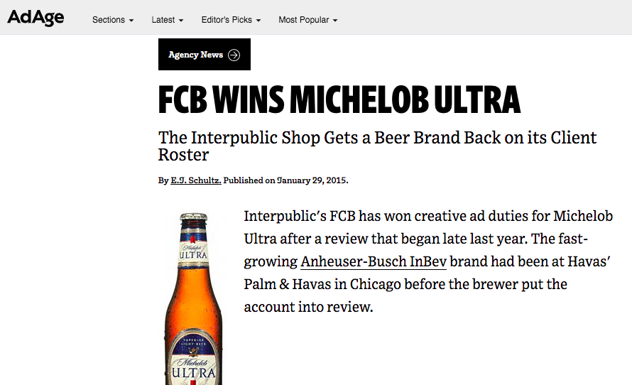 Background: Michelob ULTRA was looking to go from a commoditized light beer defined by calories and carbs after sports, to a modern lifestyle brand for active people - and for a new lead agency.